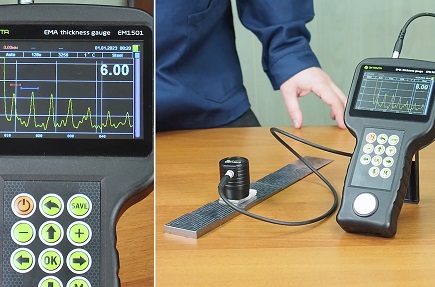 EM1501 thickness gauge inspects steel pipes, sheet metal, rods, and other products made from steel, aluminum and other metals in the convenient, fast and reliable way.