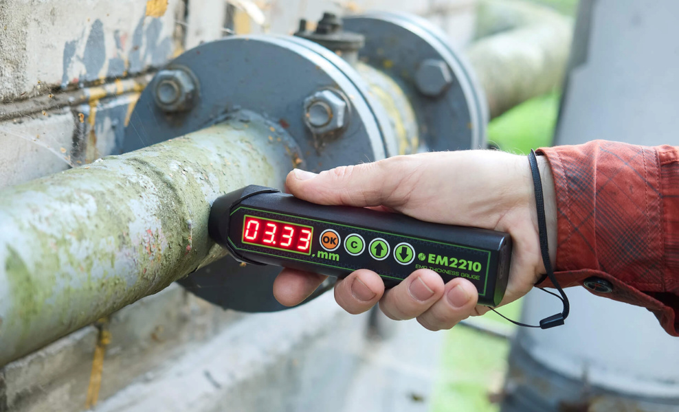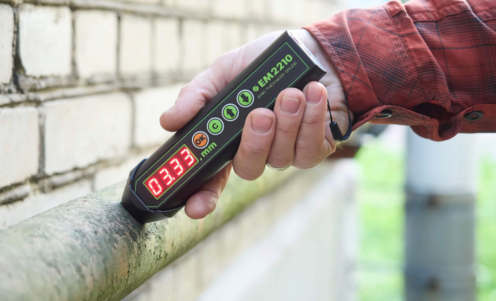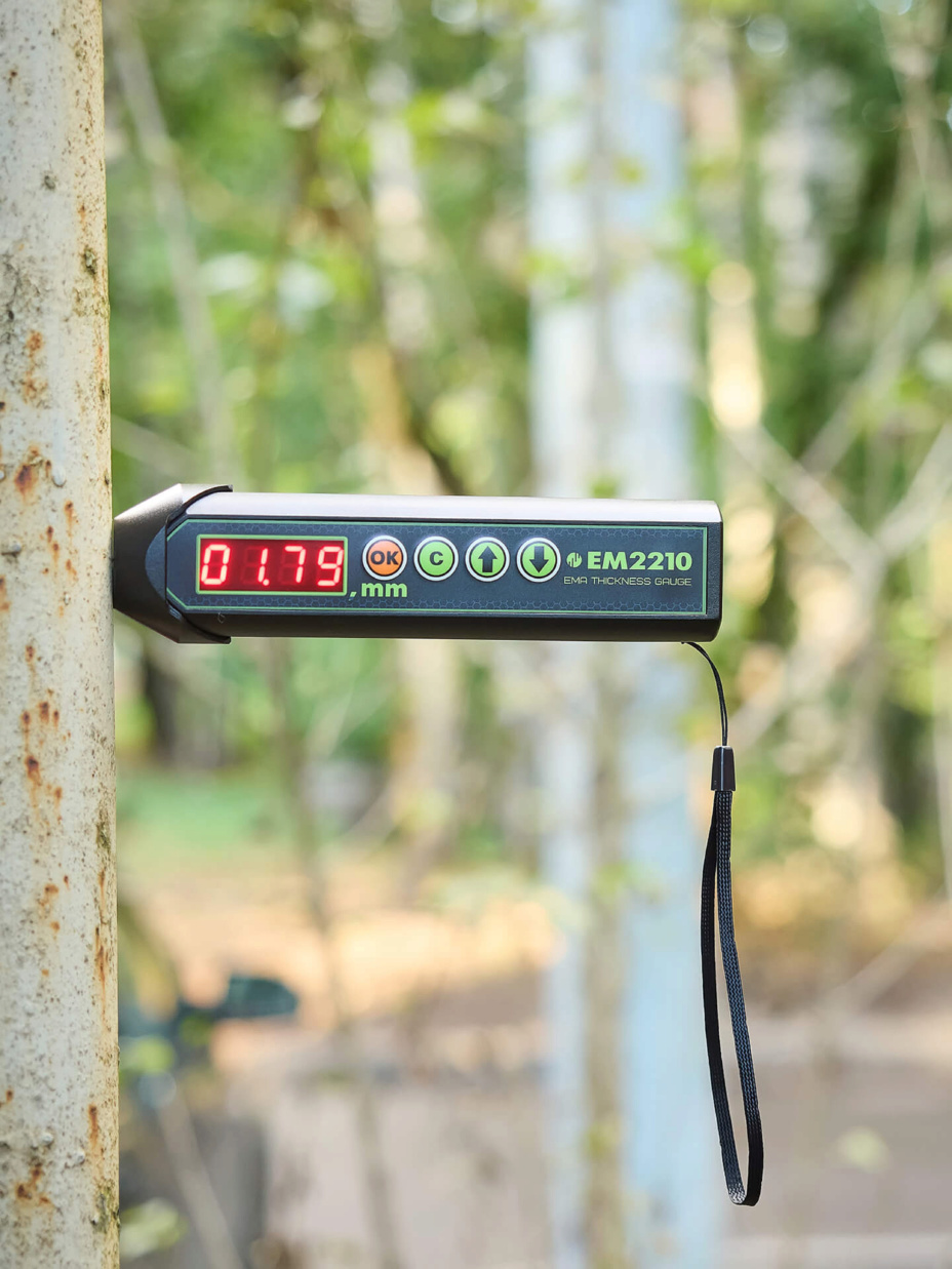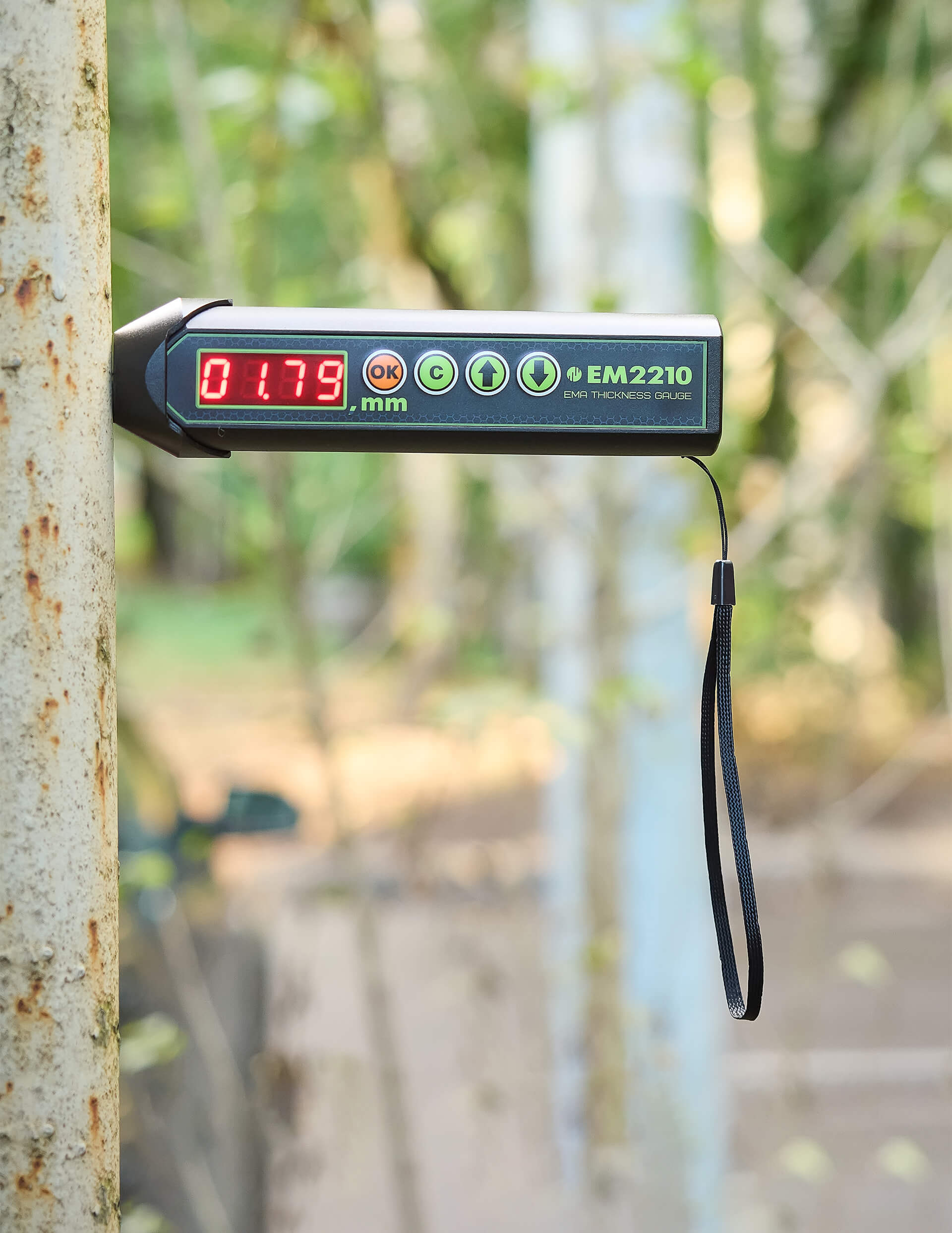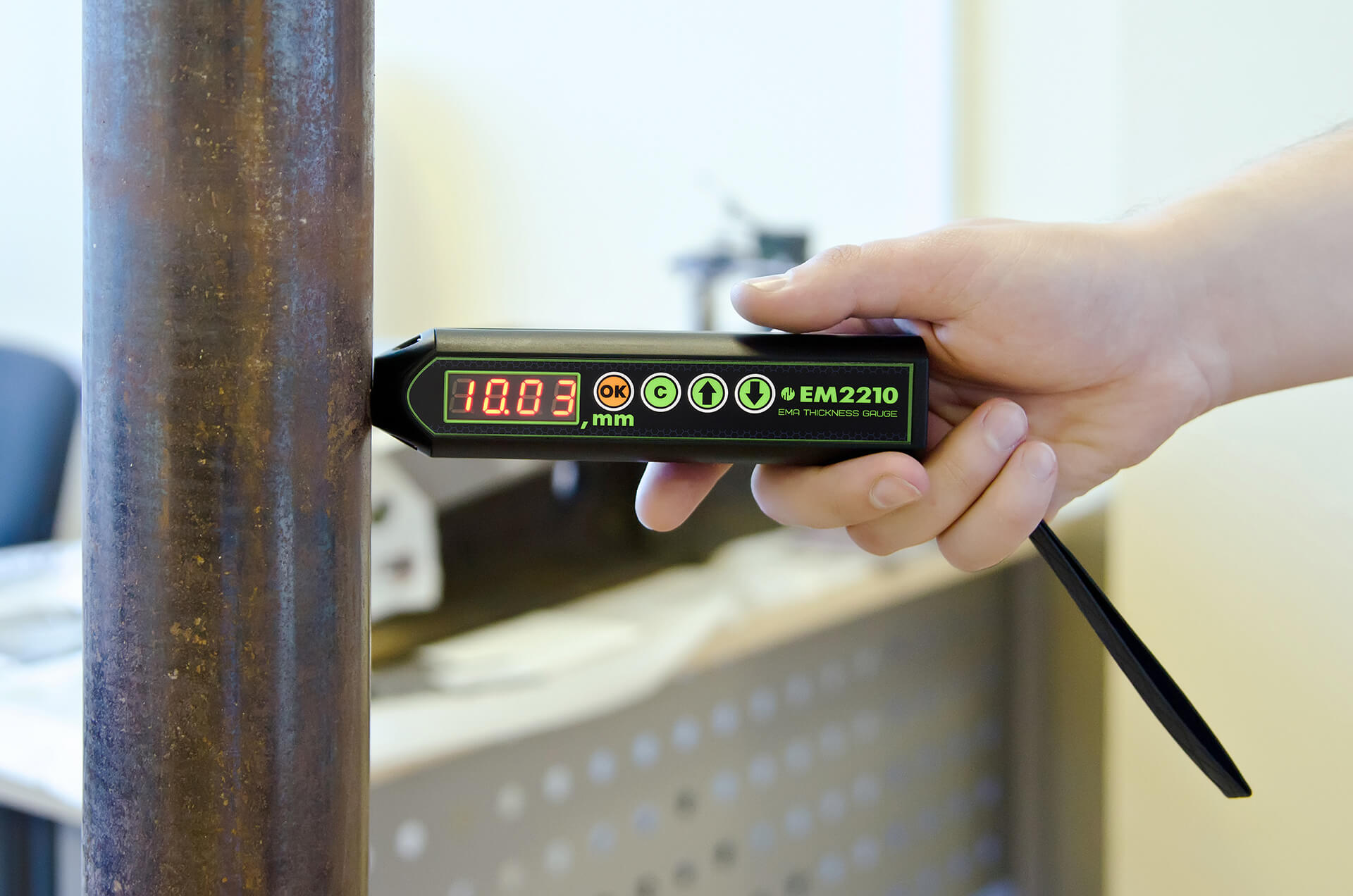 EM2210 厚度计设计用于测量钢管、金属板、棒材以及其他由钢、铝和其他金属制成的产品的厚度,无需耦合剂,无需预先进行表面处理,传感器与金属之间的工作间隙可达 3х 毫米。