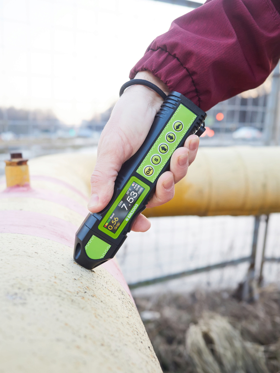 由于采用了特殊的传感器,EM5000 可以对温度高达 750 °C 的物体进行厚度测量。