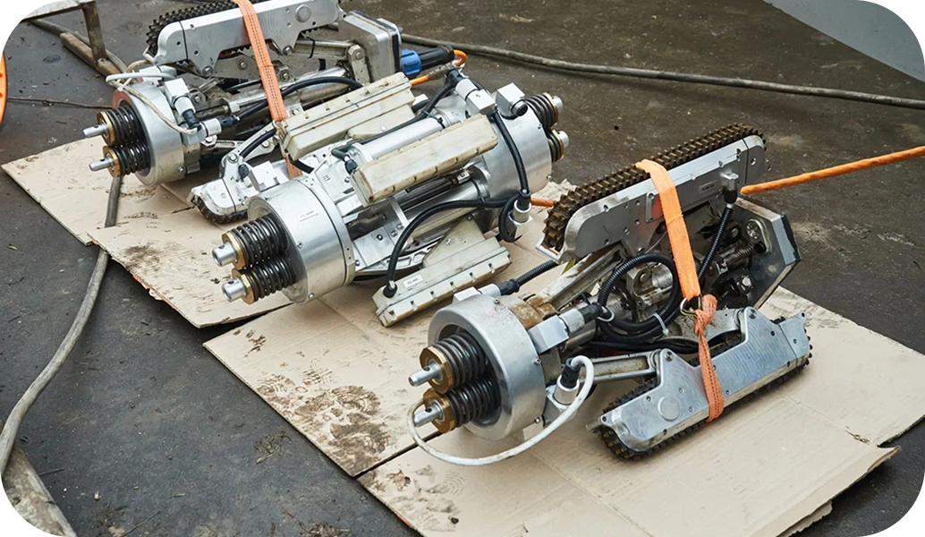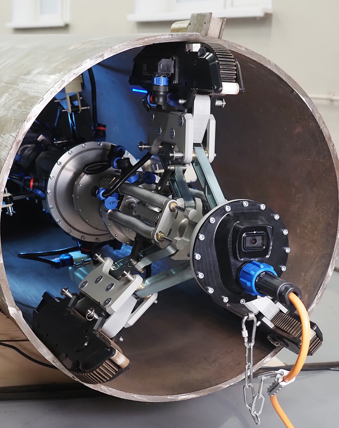 The diagnostic robot has six tracks and can navigate through heavily contaminated areas, allowing metal inspection through deposits up to 35 mm thick.
