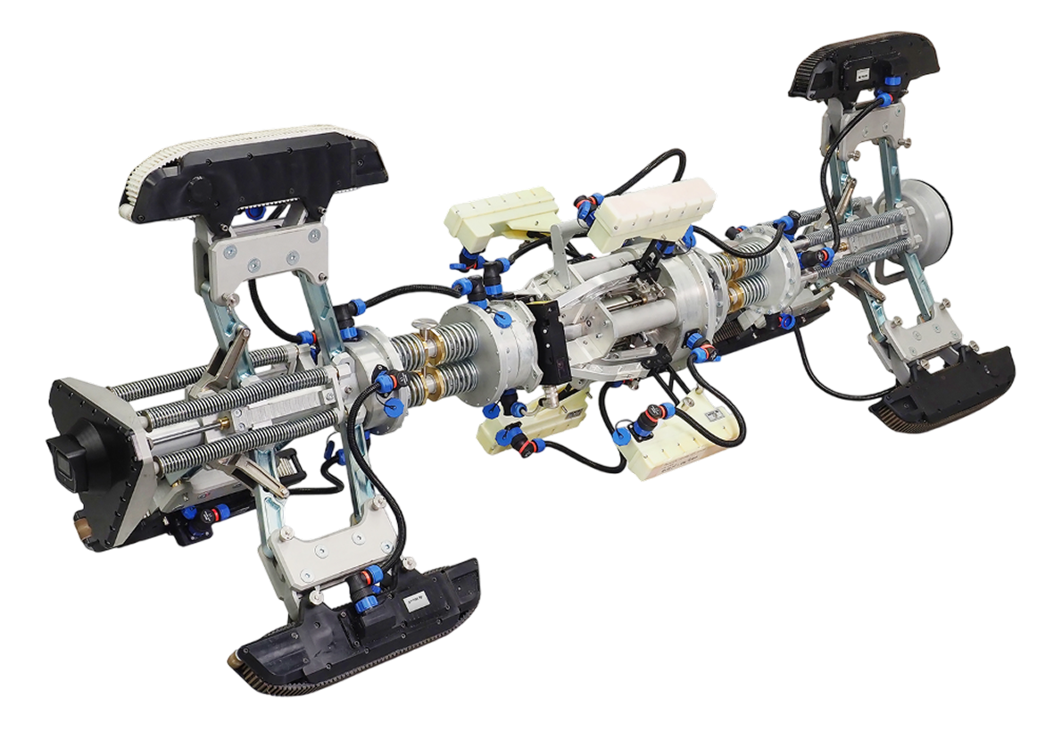 The diagnostic robot has six tracks and can navigate through heavily contaminated areas, allowing metal inspection through deposits up to 35 mm thick.
