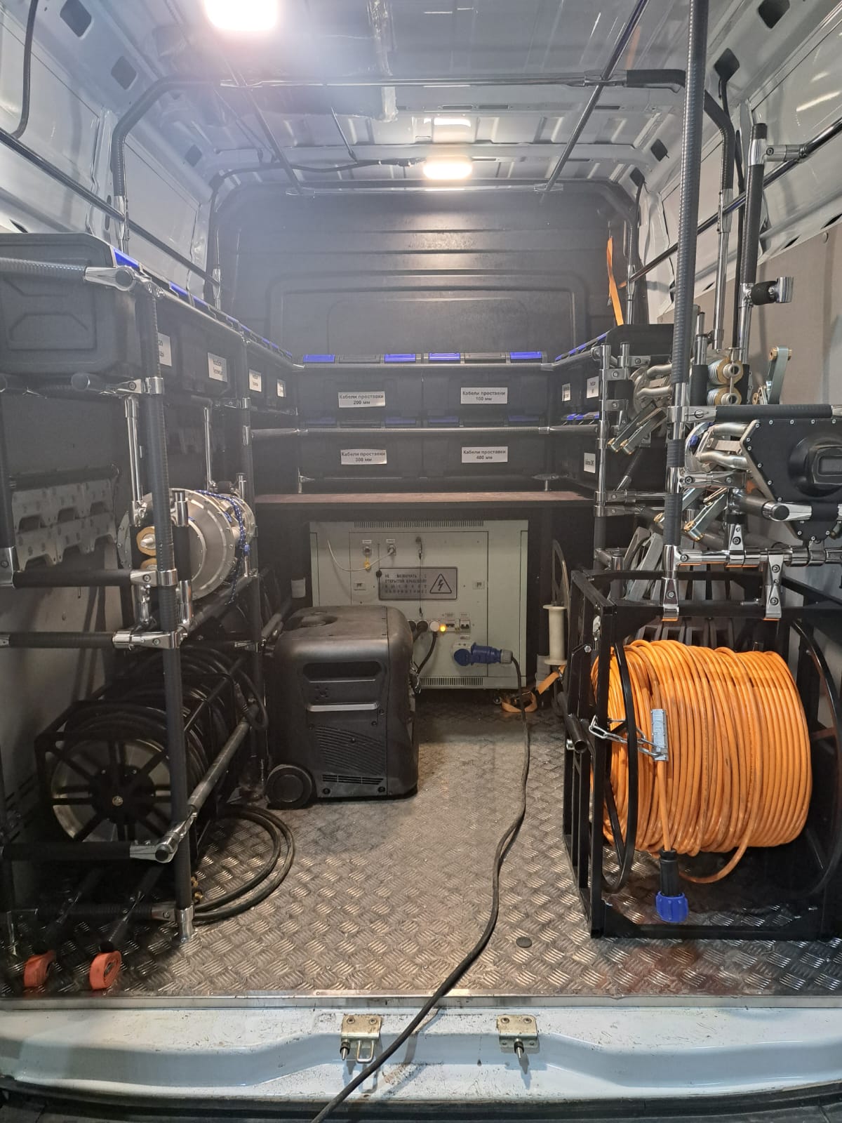 The robot is loaded into the pipe through a cut with minimal dimensions 400 x 600 mm; loading chambers welded into the pipe are not required. No pressurized water in the pipe is required to move the robot and perform the inspection. The robot is controlled by an operator in an auto laboratory placed at the robot loading point.